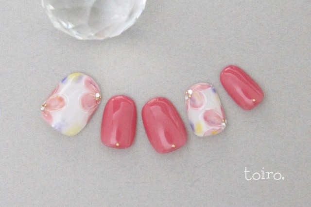 春のおすすめデザイン たらしこみのフラワーはアンティークデザインだけじゃなくて ふんわりした春ネイ Sistersnail F所属 Sisters Nail Fのエステ リラクカタログ ミニモ